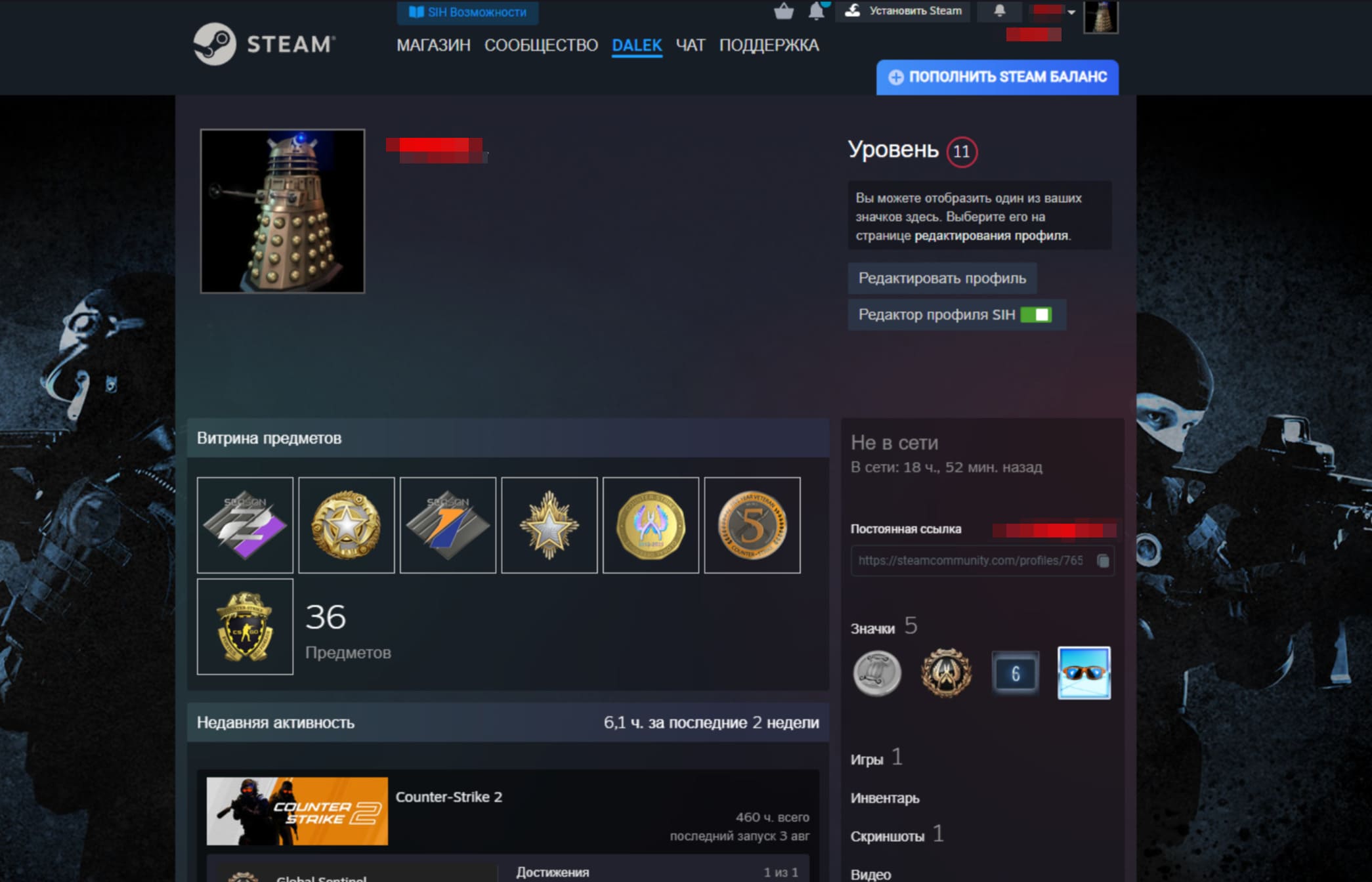 ⭐️Звание: Silver; 🌟Prime Status: Есть; ⏱Часов в игре: 493;