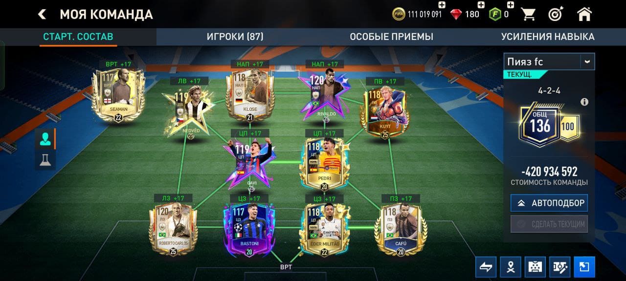 💰Золото: 111 019 091 📗Fifa-point: 0 🛑180 💪 Игроки : 87 ✔️Все привязки отсутствуют
