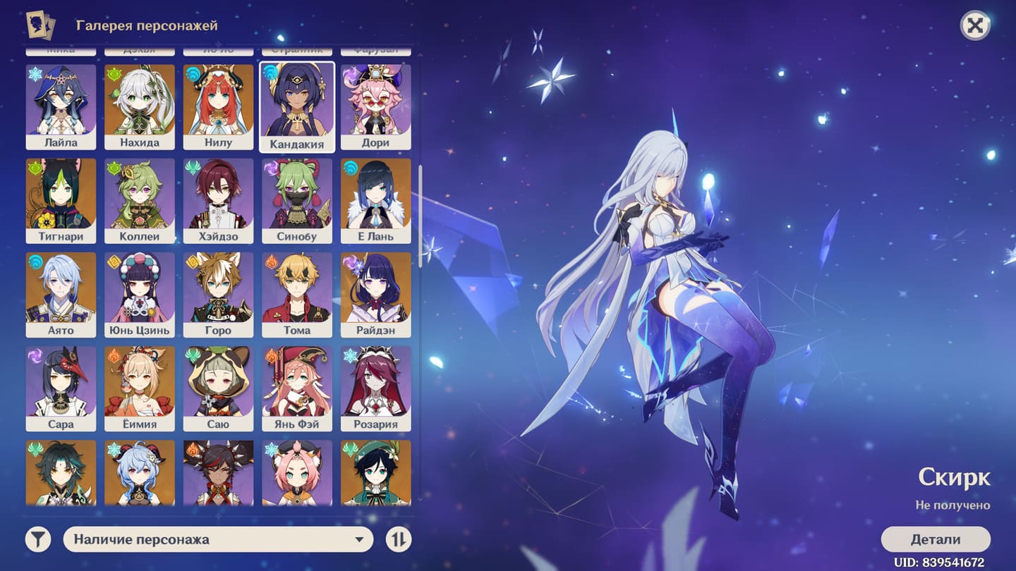 📈 Ранг: 59 🧍‍♀️ Персонажи: Нахида, Нилу, Е Лань и другие 🦾 Оружие: 5 звезд ✨ Примогемы: 98