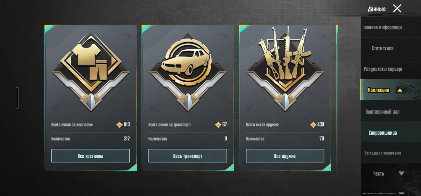 👚Топ костюмы: 149; ⭐️Royale Pass: с 4 сезонна; 🌈Скины на оружие: 23;