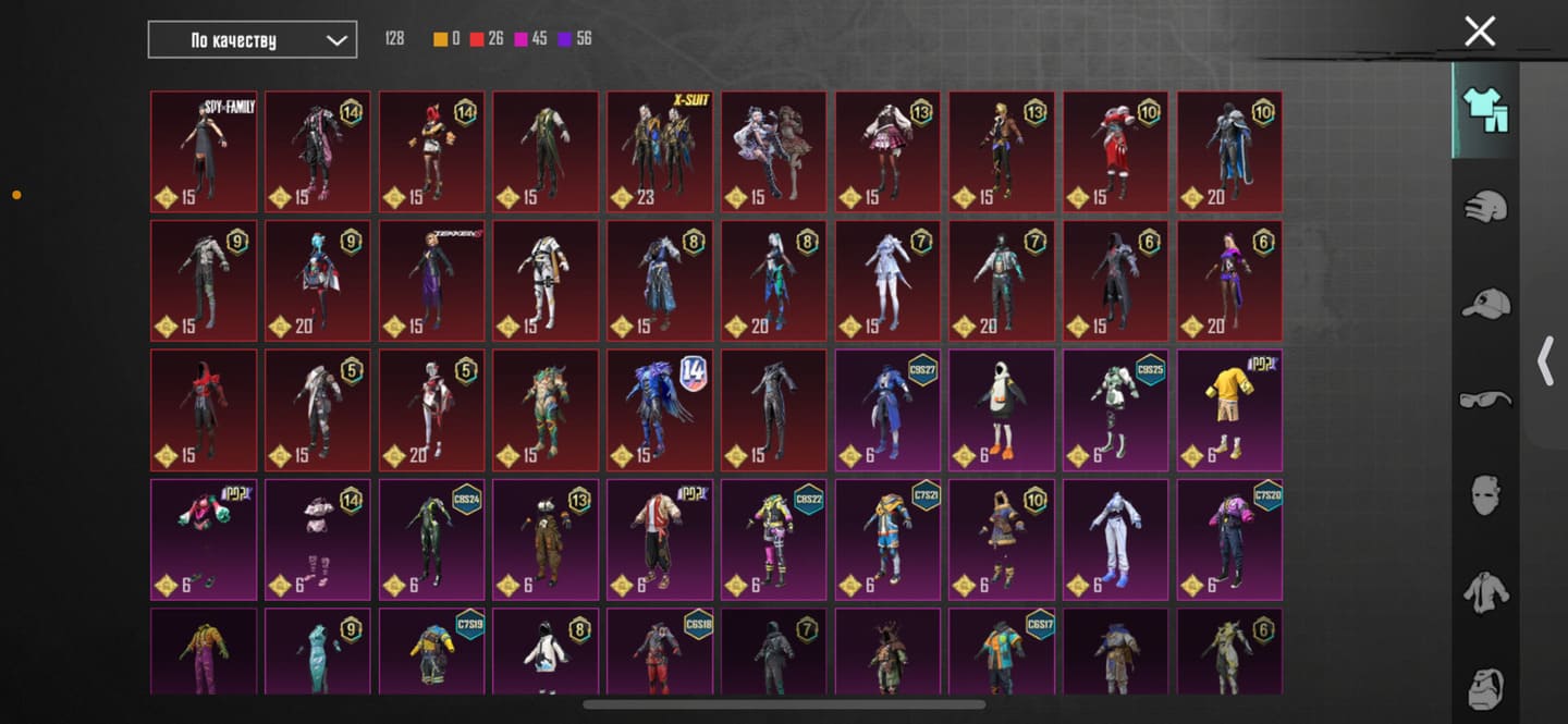 👚Топ костюмы: 97;⭐️Royale Pass: с 10 сезонна;🌈Скины на оружие: 47;