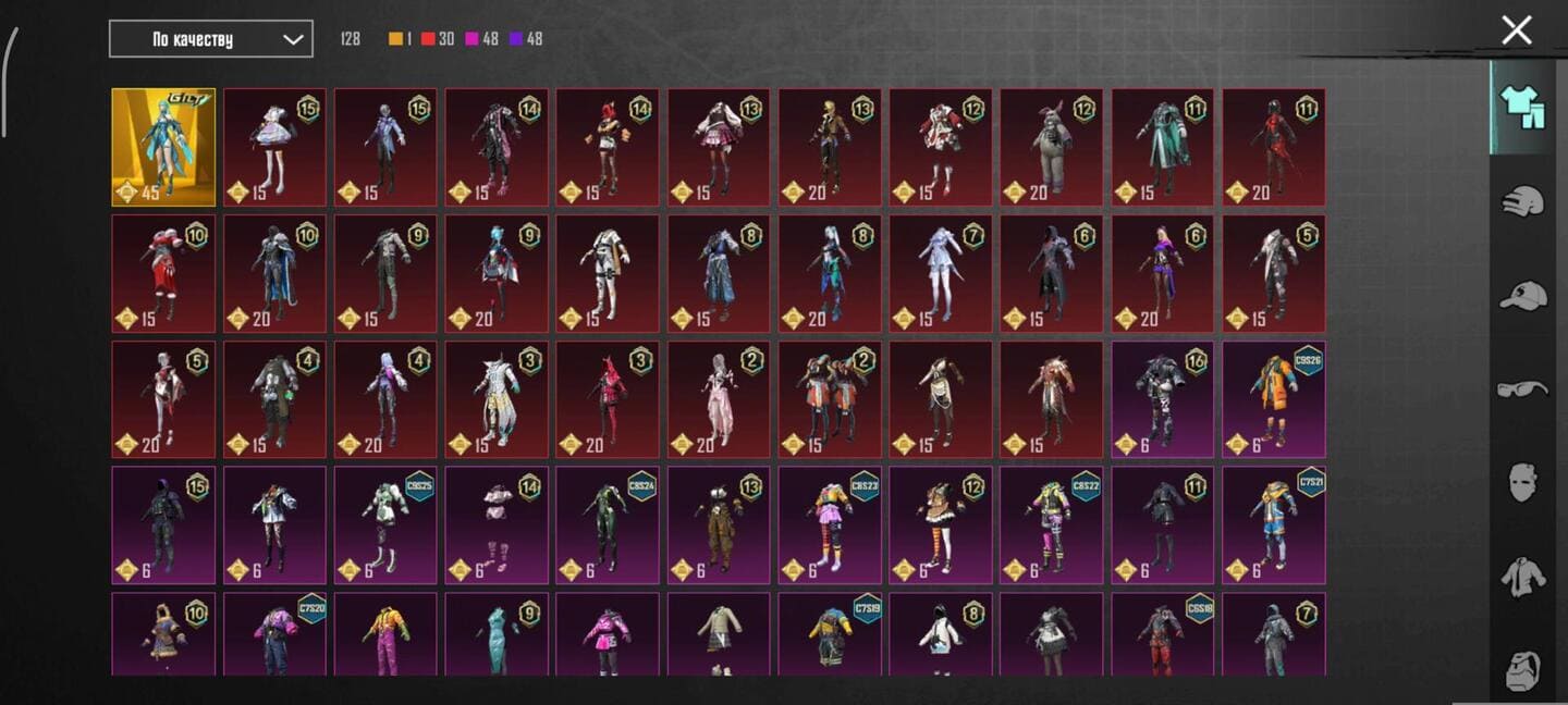 👚Топ костюмы: 34;⭐️Royale Pass: с 4 сезонна;🌈Скины на оружие: 28;
