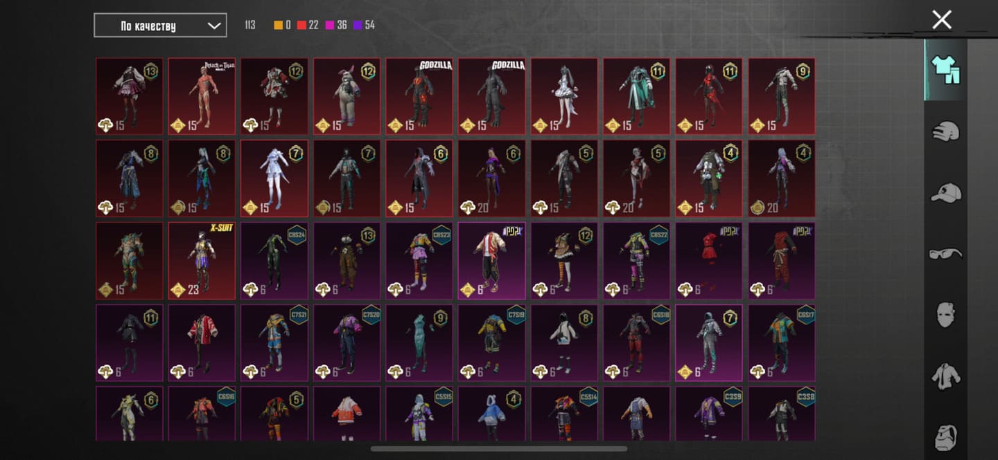 👚Топ костюмы: 31; ⭐️Royale Pass: с 6 сезонна; 🌈Скины на оружие: 36;