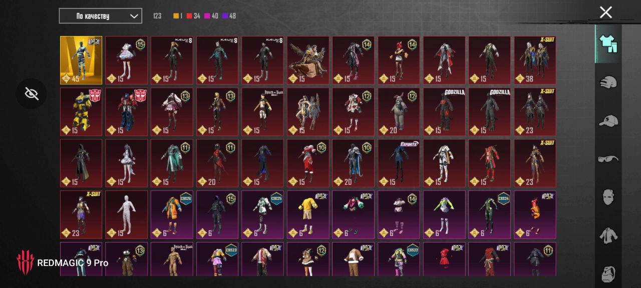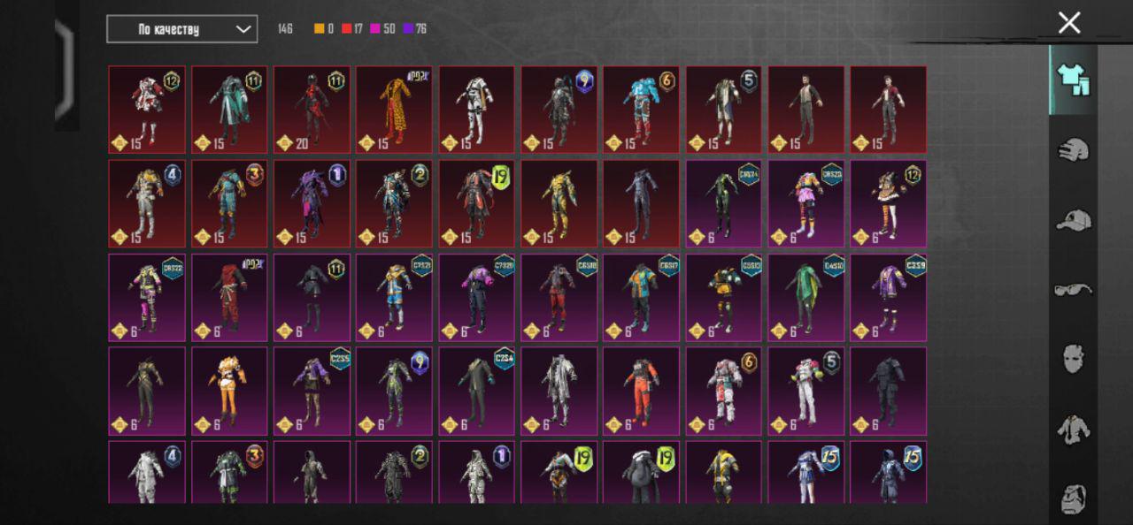 👚Топ костюмы: 65; ⭐️Royale Pass: с 5 сезонна; 🌈Скины на оружие: 36;